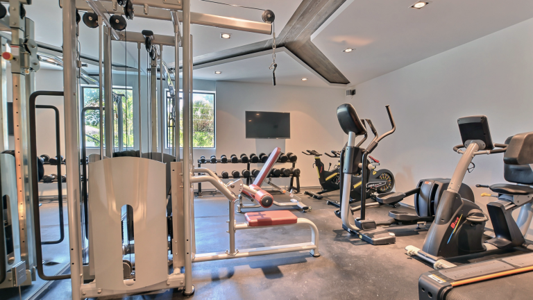 Our home features a fully equipped 300 sq. ft. (28 m²) fitness room to help you stay active while on vacation. The gym offers a variety of strength and weight training equipment, as well as cardio machines.