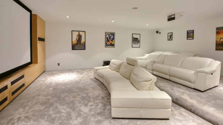 Located on the ground floor, our 400 sq. ft. (37 m²) movie theater is equipped with electric leather recliners. Guests can enjoy a surround sound experience while watching their favorite movies or TV series.