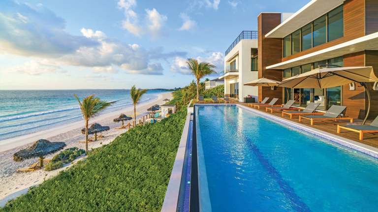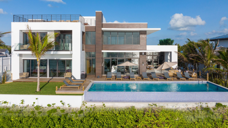 Modern House is a breathtaking Harbour Island rental with pool and spacious pool deck. This luxury home features a large pool—heated in winter—with sunbeds offering views of Harbour Island’s beautiful beaches.